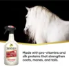ShowSheen® Original Hair Polish & Detangler je visoko zmogljiv sprej za konje, zasnovan za hitro in učinkovito razčesavanje grive in repa brez lomljenja dlake. Njegova napredna formula, obogatena s provitamini in svilnatimi proteini, ne samo razplete vozle, ampak tudi nahrani, okrepi in zaščiti dlako pred poškodbami zaradi krtačenja.